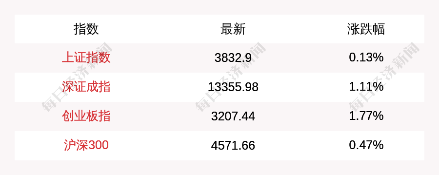 每經AI快訊:北京時間9月29日11:30,上(shang)證指(zhi)數早盤上(shang)漲(zhang)4.79點(dian),漲(zhang)幅(fu)(fu)為0.13%,報收(shou)3832.9點(dian),成交(jiao)額5551.42億(yi)(yi)(yi)元;深(shen)證成指(zhi)上(shang)漲(zhang)146.98點(dian),漲(zhang)幅(fu)(fu)為1.11%,報收(shou)13355.98點(dian),成交(jiao)額7290.8億(yi)(yi)(yi)元;創業板(ban)指(zhi)上(shang)漲(zhang)55.91點(dian),漲(zhang)幅(fu)(fu)為1.77%,報收(shou)3207.44點(dian),成交(jiao)額3442.82億(yi)(yi)(yi)元;滬深(shen)300上(shang)漲(zhang)21.61點(dian),漲(zhang)幅(fu)(fu)為0.47%,報收(shou)4571.66點(dian),成交(jiao)額3851.94億(yi)(yi)(yi)元。