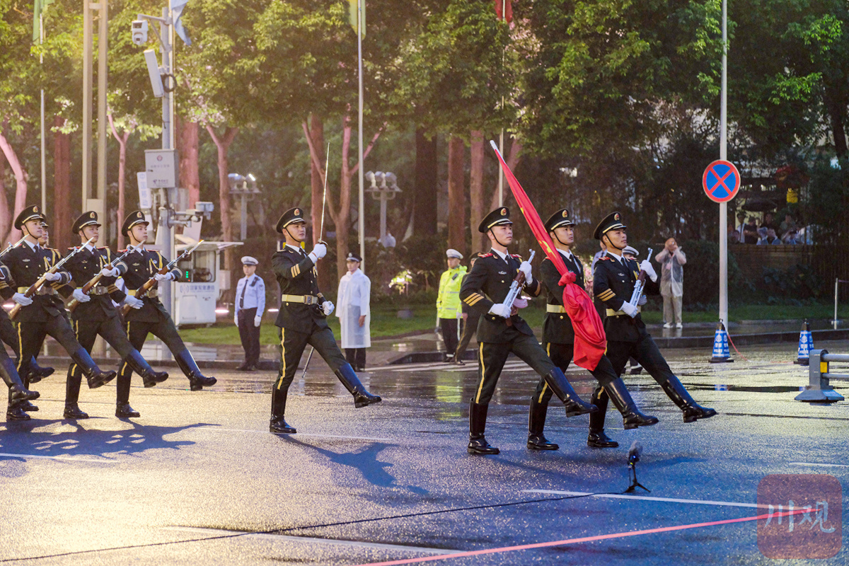 10月1日清(qing)晨(chen),天(tian)空(kong)下起了(le)小雨,但成(cheng)都(dou)天(tian)府廣場卻洋(yang)溢(yi)著熱烈的節日氛圍,數萬名市民和(he)游(you)客齊(qi)聚,冒雨觀(guan)看升國旗儀式,慶祝(zhu)新中國成(cheng)立76周年。