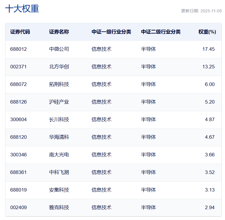注:數據來源ifind,截至2025.11.5,半導體設備ETF規模為72.05億,在同類6只產品中排名第一。