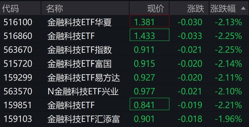 受盤面影響,金融科技相關ETF跌約2%。