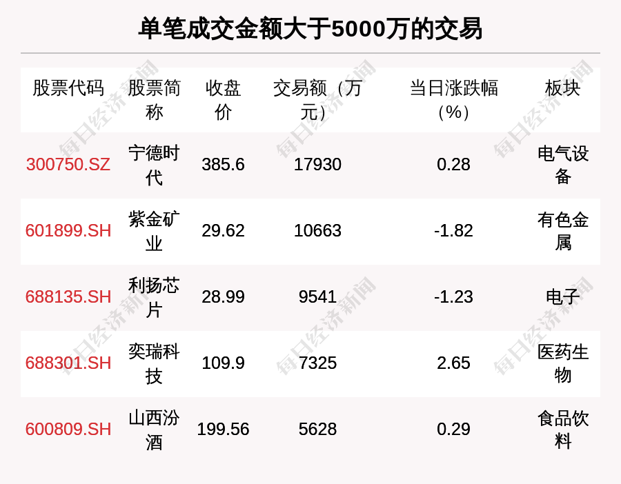 透視大宗交易:11月11日共成交215筆,寧德時代成交1.79億元