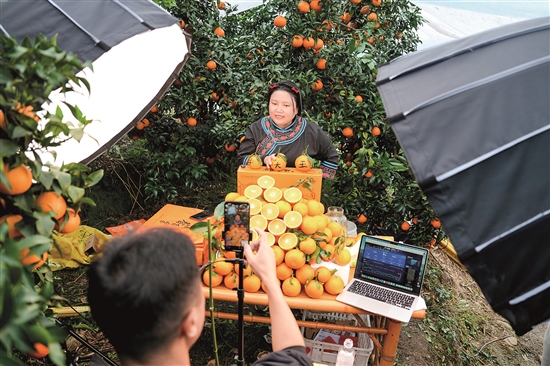 夜幕降臨時,直播區的LED燈帶照亮了整片果園,主播對著鏡頭演示柑橘糖度測試。不遠處,打包區的村民們借著燈光分揀裝箱,掃描槍“滴滴”聲與主播的講解聲交織成豐收夜曲。“明天就是‘雙十一’了,希望今晚就能爆單。”果農們充滿期待,這些穿梭在田埂間的數據流,正讓傳統農業煥發新的生機。