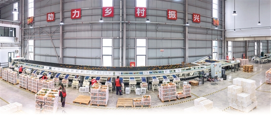 目前,該企業日均訂單量穩定在1萬單以上,隨著銷售旺季到來,預計將攀升至每日2萬到3萬單。園區為企業提供了超過1萬平方米的運營空間和750平方米的專業冷藏庫,配備的先進智能水果分選線,可根據果實重量、大小、糖度及內部品質精準分級,極大提升了產品附加值和市場競爭力。