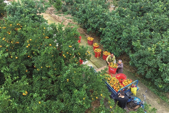 采購商張玉容已是第五年專程來百家池村收購柑橘,她拿起一顆剛采摘的愛媛,剝開薄薄的果皮說:“這里的愛媛皮薄肉厚、顏色紅亮,糖度達標,在山東、遼寧市場特別受歡迎。”今年張玉容計劃收購2.5萬公斤愛媛,后續還將持續采購椪柑和春見。