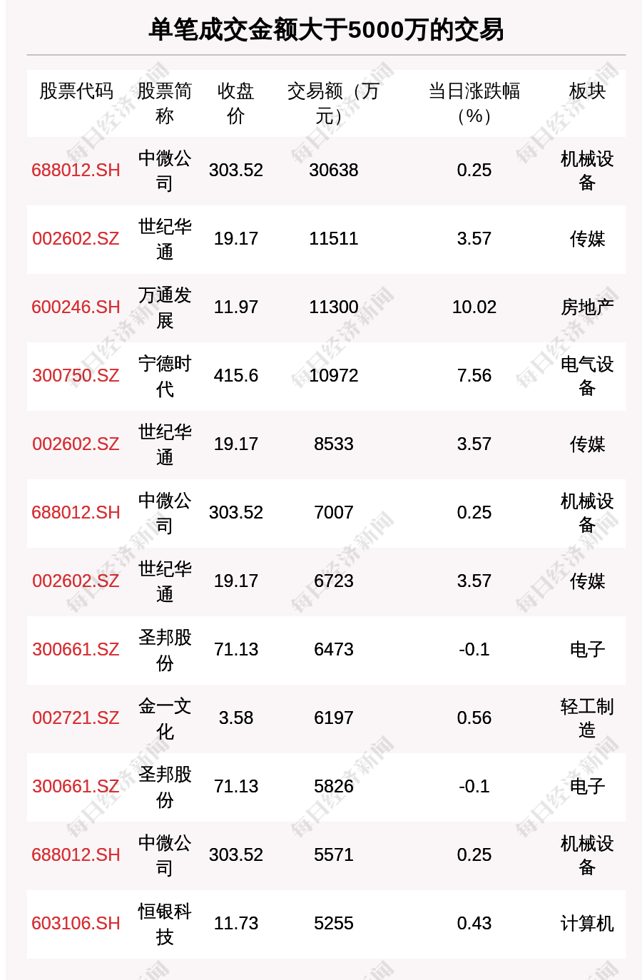 透視大宗交易:11月13日共成交248筆,中微公司成交4.42億元