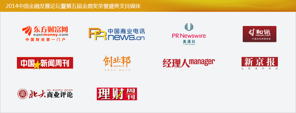 由《每日經濟(ji)新聞(wen)》主辦的(de)一(yi)(yi)年一(yi)(yi)度的(de)“2014中國(guo)金(jin)融(rong)發(fa)展論(lun)壇暨第五屆金(jin)鼎獎(jiang)榮譽盛典”活動即將拉開帷幕,本(ben)次活動以(yi)“深改革?新機遇”為主題, 從財富(fu)管(guan)理的(de)角度關(guan)注金(jin)融(rong)業的(de)發(fa)展新趨(qu)勢。本(ben)次金(jin)鼎獎(jiang)活動作為《每日經濟(ji)新聞(wen)》年度大型金(jin)融(rong)行業活動,已經成(cheng)功舉辦四屆,均獲得圓滿成(cheng)功,得到了行業內各(ge)大金(jin)融(rong)機構的(de)關(guan)注和認(ren)可。