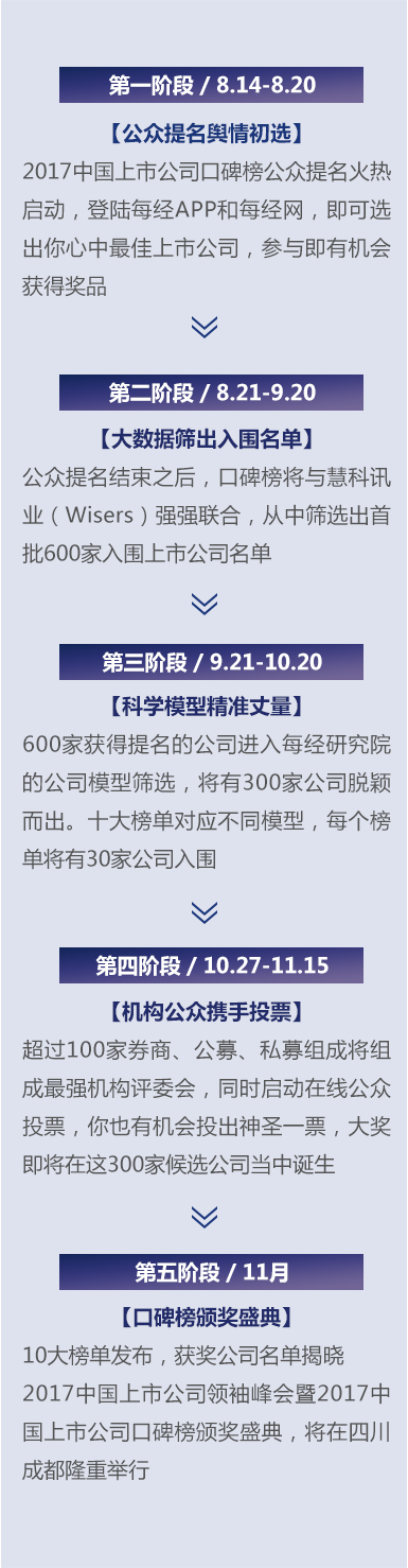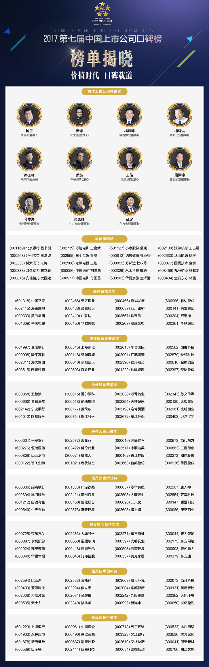 正(zheng)本(ben)清源(yuan)、守望價(jia)值,也一直是《每日經(jing)濟新(xin)聞》連續七年舉辦中國(guo)上市公司口(kou)碑榜的初衷。2017年的盛會已經(jing)正(zheng)式開啟,在(zai)價(jia)值時代(dai)的感召之下,今年的獎項競選必將更(geng)為(wei)激烈(lie),就讓我們靜候佳(jia)音。