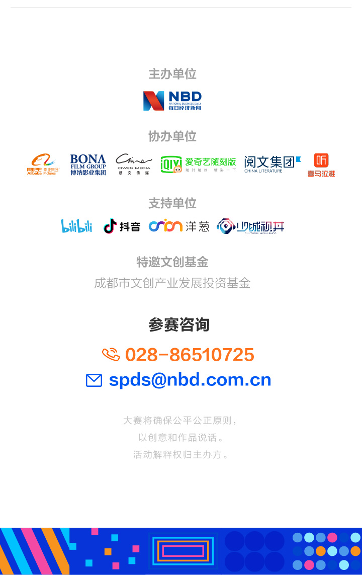 “第二屆影像天府·短視頻創攝大賽”于2020年4月正式啟動,邀約全球創攝愛好者續寫“成都,一座來了就不想離開的城市”篇章,征集優質影像作品。本次大賽設置最佳天府表達短視頻、最佳外文短視頻、最佳導演獎、最佳創意獎、最佳技術創新獎、最佳攝影獎六大專業。評委包括中國電影家協會副主席,上海電影家協會主席任仲倫;艾美獎得主,美國著名影視導演、制片人Mark Zaslove;著名導演、編劇、制片人蔣欽民;洋蔥視頻聯合創始人聶陽德......