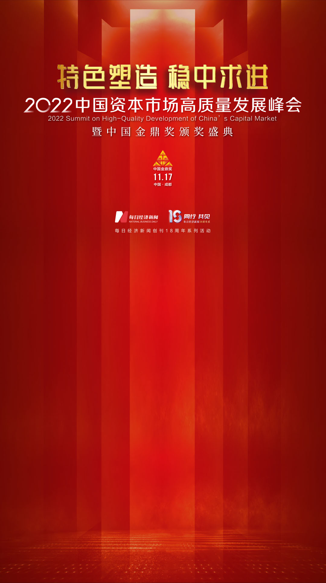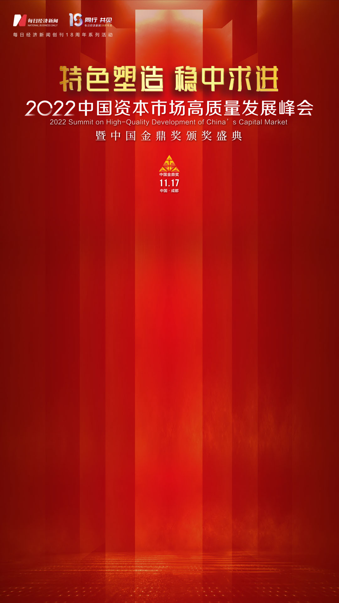 資本(ben)(ben)市(shi)場(chang)未來可期,證(zheng)券行業亦任重道遠。因此,我(wo)們將本(ben)(ben)屆中國(guo)(guo)資本(ben)(ben)市(shi)場(chang)高質量發展(zhan)峰會主題(ti)定(ding)為:“特色塑造,穩中求進”。希(xi)望(wang)聽到您對中國(guo)(guo)資本(ben)(ben)市(shi)場(chang)未來發展(zhan)的真知(zhi)灼見。