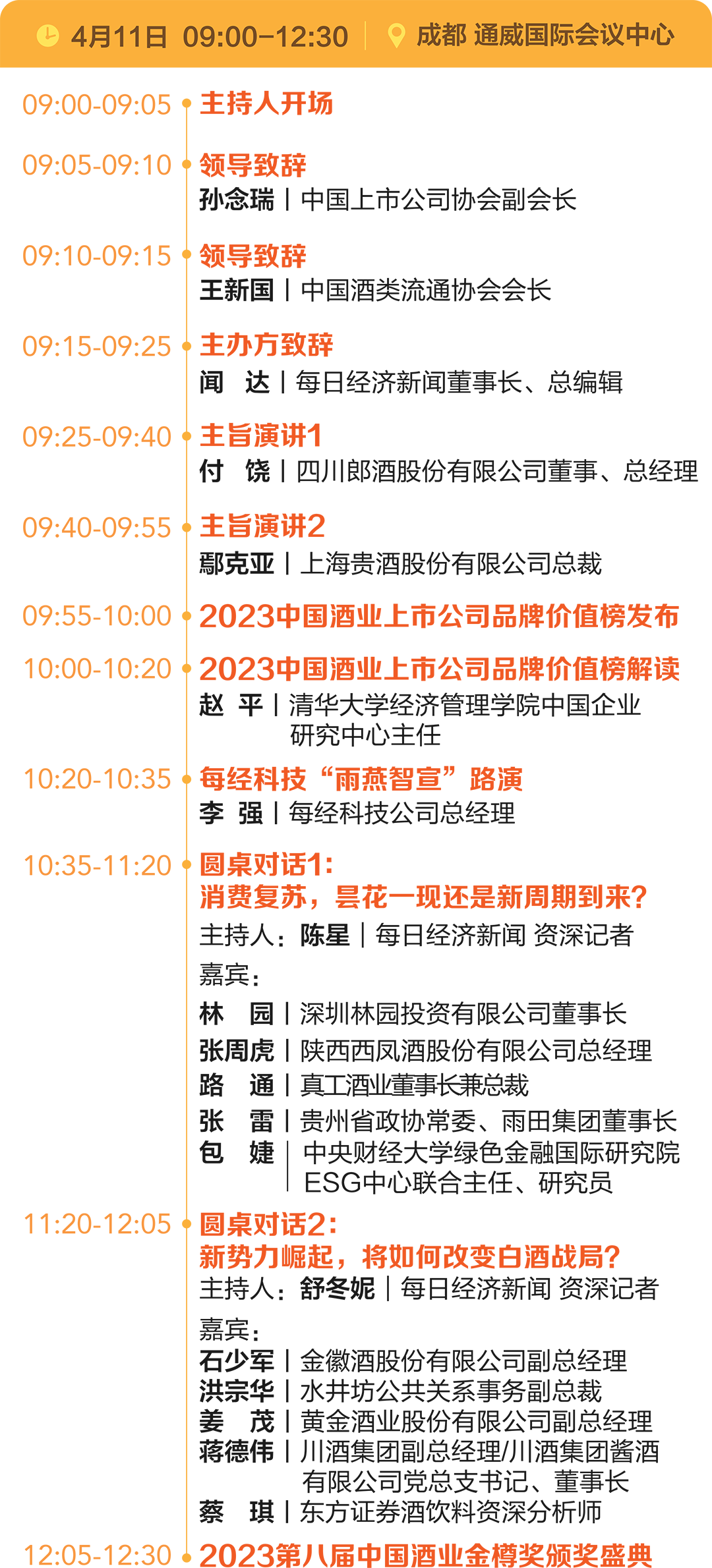 2023年,酒(jiu)(jiu)業(ye)(ye)(ye)(ye)(ye)還(huan)將出現哪些新(xin)的重(zhong)要變化?值(zhi)第108屆全(quan)國(guo)糖酒(jiu)(jiu)會4月(yue)在成都啟幕之際,4月(yue)11日(ri),由每(mei)日(ri)經(jing)濟(ji)新(xin)聞主辦的“2023第八屆中國(guo)酒(jiu)(jiu)業(ye)(ye)(ye)(ye)(ye)資(zi)本(ben)論壇(tan)”將盛大舉行,活動將匯(hui)聚酒(jiu)(jiu)行業(ye)(ye)(ye)(ye)(ye)、資(zi)本(ben)圈等眾(zhong)多大咖,以(yi)(yi)財經(jing)視(shi)角聚焦中國(guo)酒(jiu)(jiu)業(ye)(ye)(ye)(ye)(ye)市場新(xin)機遇,以(yi)(yi)資(zi)本(ben)力(li)量擘畫中國(guo)酒(jiu)(jiu)業(ye)(ye)(ye)(ye)(ye)新(xin)藍圖。與此同(tong)時,由每(mei)日(ri)經(jing)濟(ji)新(xin)聞主辦評(ping)選的“中國(guo)酒(jiu)(jiu)業(ye)(ye)(ye)(ye)(ye)金樽獎”;由每(mei)日(ri)經(jing)濟(ji)新(xin)聞聯(lian)合清華大學經(jing)管學院中國(guo)企業(ye)(ye)(ye)(ye)(ye)研(yan)究中心發布(bu)的“中國(guo)酒(jiu)(jiu)業(ye)(ye)(ye)(ye)(ye)上市公(gong)司(si)品牌價值(zhi)榜(bang)”,都將推動中國(guo)酒(jiu)(jiu)業(ye)(ye)(ye)(ye)(ye)的高質量發展(zhan)。