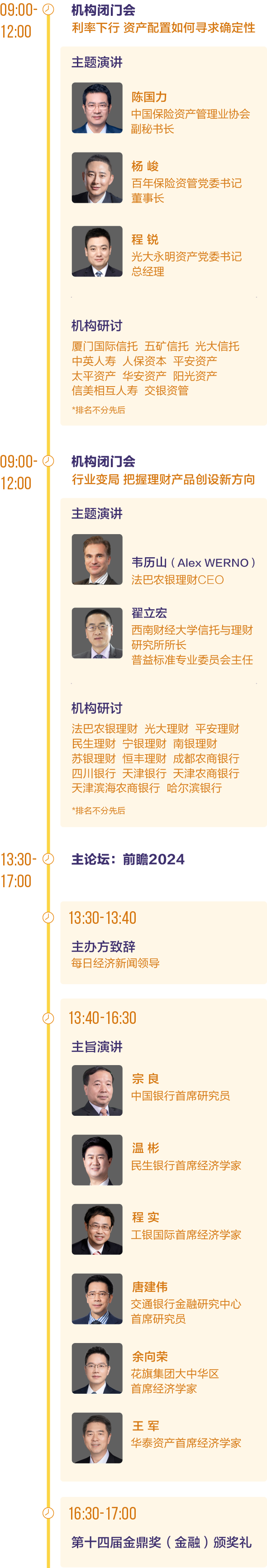 第十四屆中國金(jin)融(rong)發展(zhan)論壇(tan)暨金(jin)鼎獎(金(jin)融(rong))頒獎禮將于12月(yue)6日在北京隆重舉行。主論壇(tan)以“前瞻(zhan)2024”為主題(ti)匯(hui)集(ji)頂級金(jin)融(rong)機構(gou)的研(yan)究成果,就(jiu)2024宏觀(guan)經(jing)濟(ji)金(jin)融(rong)形勢進行分享。分論壇(tan)聚(ju)焦金(jin)融(rong)機構(gou)資產端(duan)(duan)和產品端(duan)(duan)兩大細分領域,邀請相關機構(gou)業務負責人展(zhan)開閉門研(yan)討。