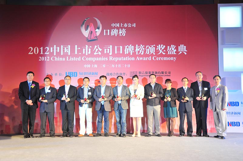 ⑵ 10月21日(ri),2012中(zhong)國上市(shi)公司口碑榜(bang)頒獎盛典